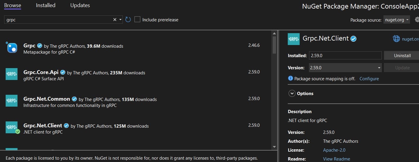 Run the console application. We can see that it consumes the exposed gRPC endpoint.