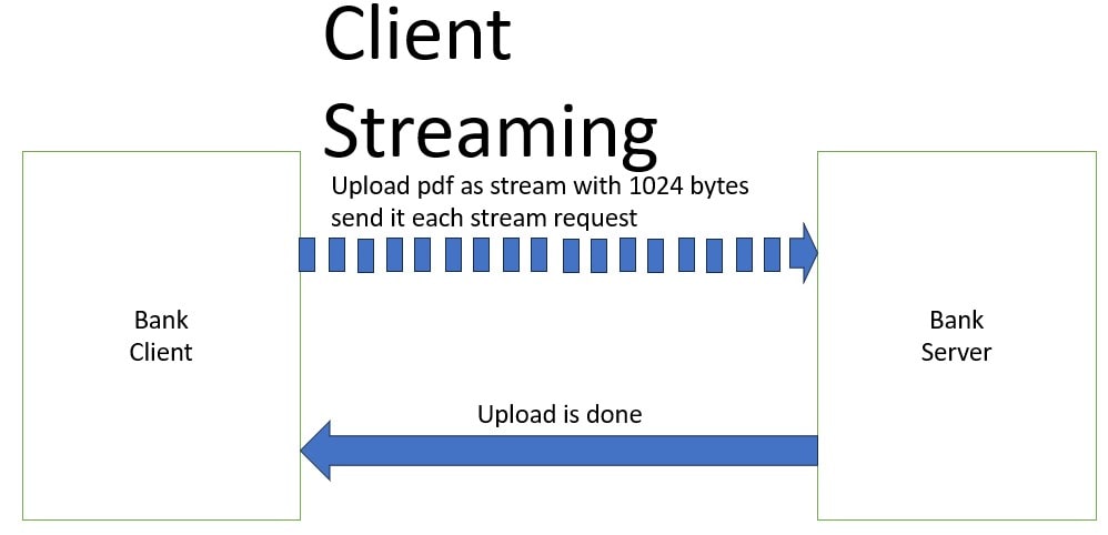 Consider a banking service where the the client needs to get transaction information of 30 days. This transaction information is processed by the server. But this is very large information which cannot be sent to the client as a single response. So it is sent as stream to the client.service TransactionService { rpc streamTransactions(AccountRequest) returns (stream TransactionDetailList); }