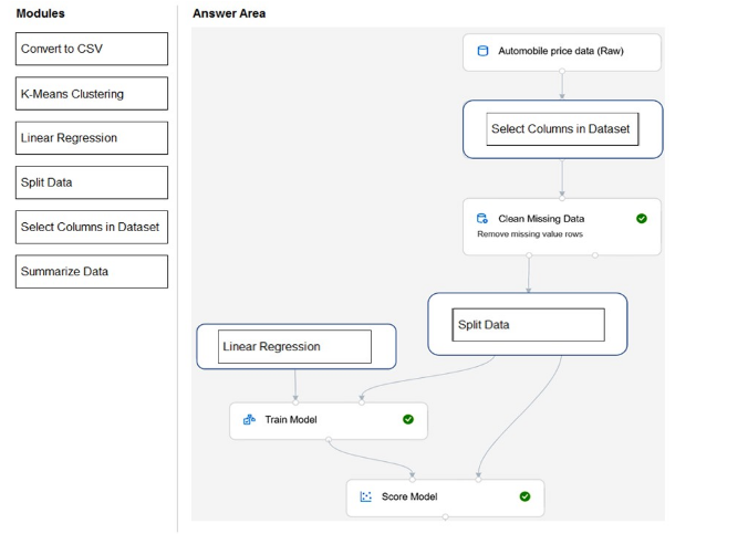 Q. Which two components can you drag onto a canvas in Azure Machine Learning designer? Each correct answer presents a complete solution. NOTE: Each correct selection is worth one point.