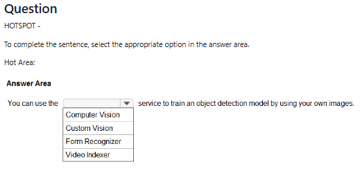 Q. You are building a tool that will process images from retail stores and identify the products of competitors. The solution will use a custom model. Which Azure Cognitive Services service should you use?