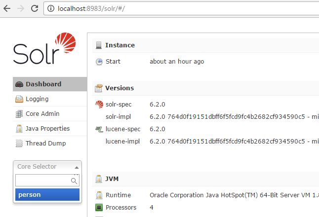 Solr core named person has been created.