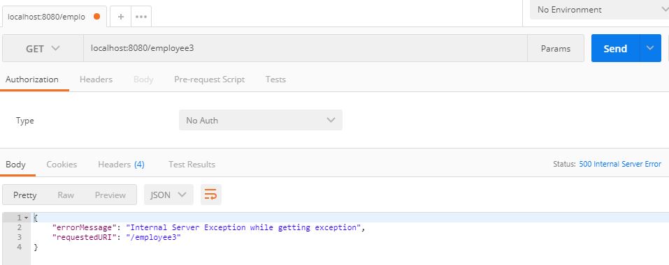 We have two other requestmappings, one returns a null employee and the other throws an exception.